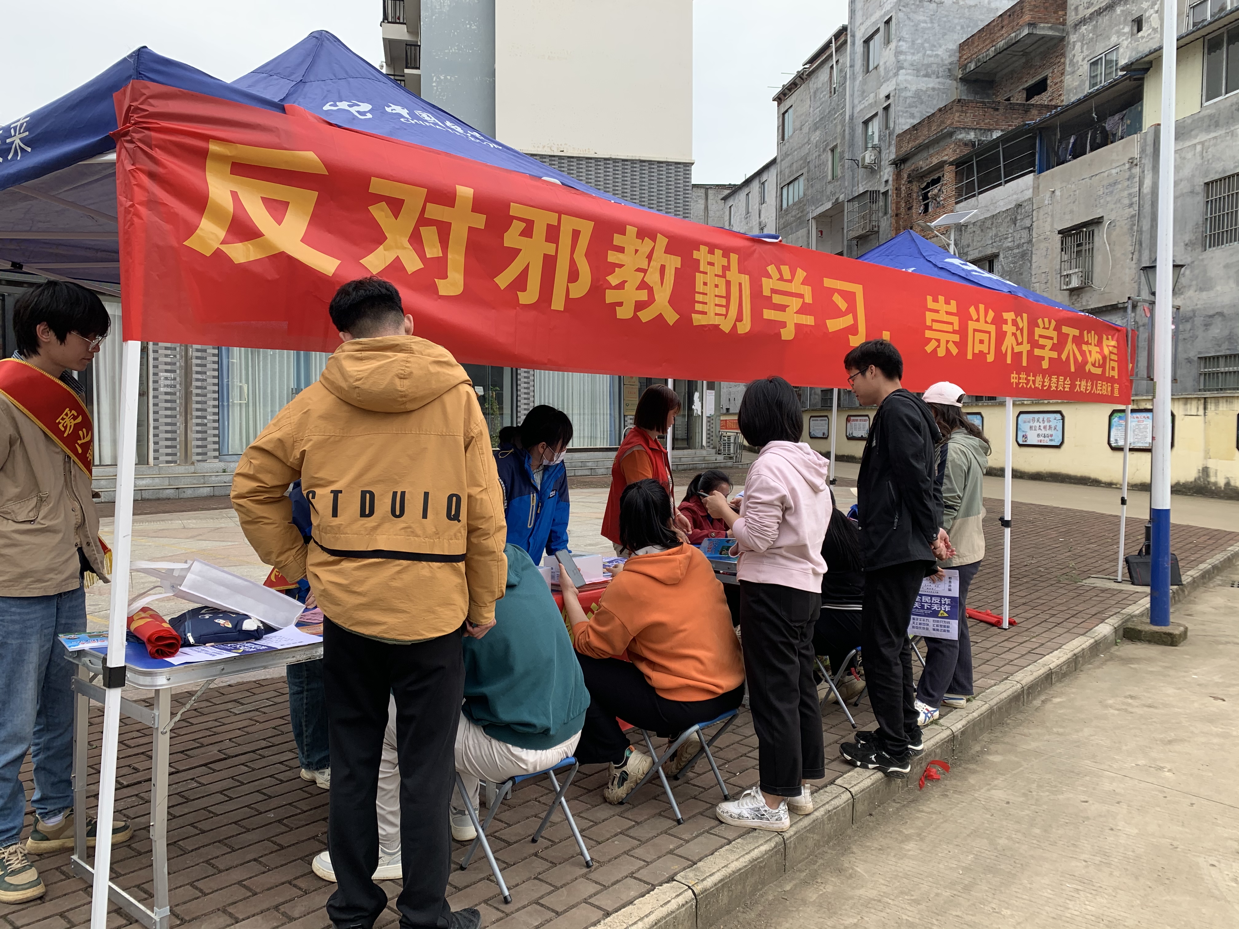 广西反邪教网贵港4月9日讯(通讯员 丘彩梦)为喜迎广西传统节日壮族“三月三”,使禁毒、反邪教科普知识深入人心,增强群众识毒拒毒、识邪拒邪的意识和能力,借助壮族“三月三”节日人流量大、关注度高的有力时机,4月8日,贵港市覃塘区大岭乡政府在金岭小区开展禁毒、反邪教宣传教育进网格活动。