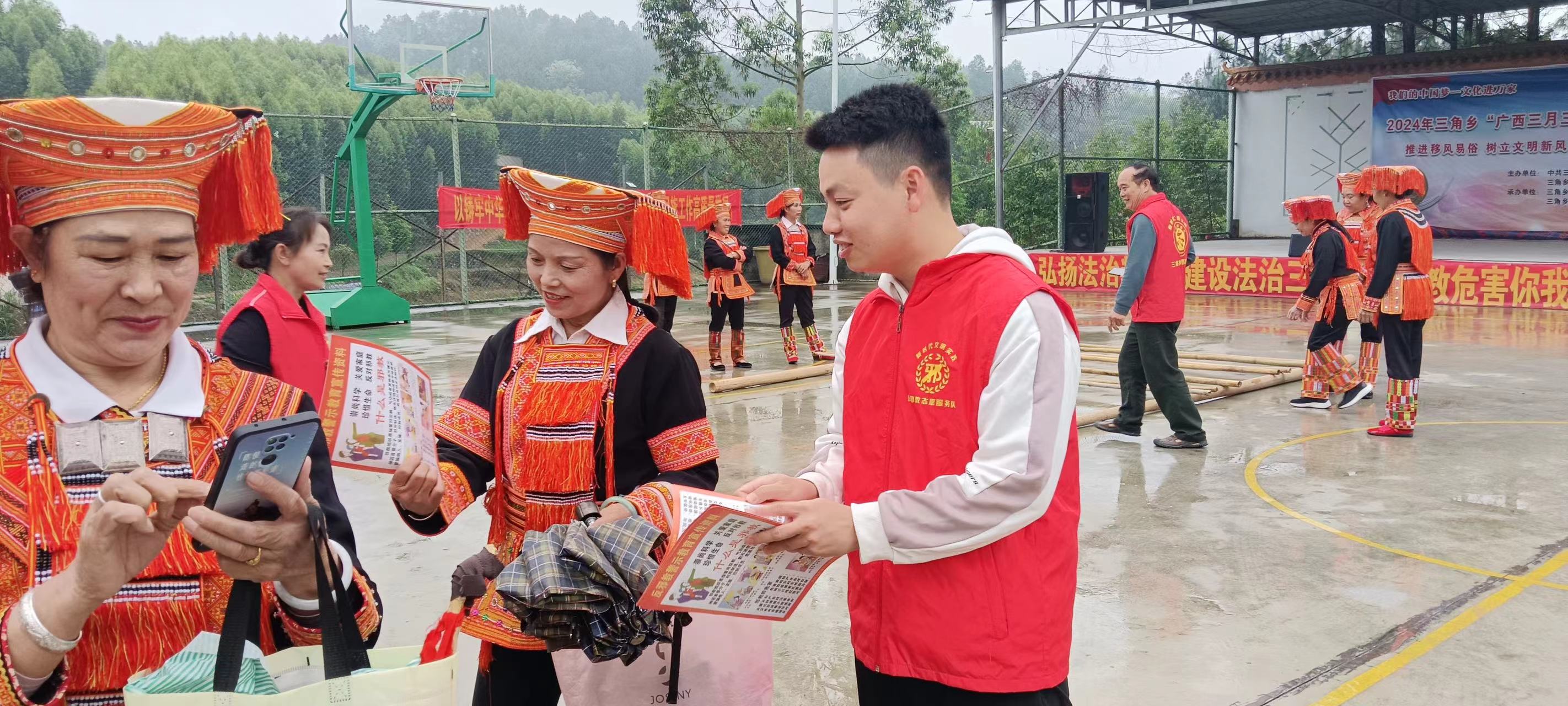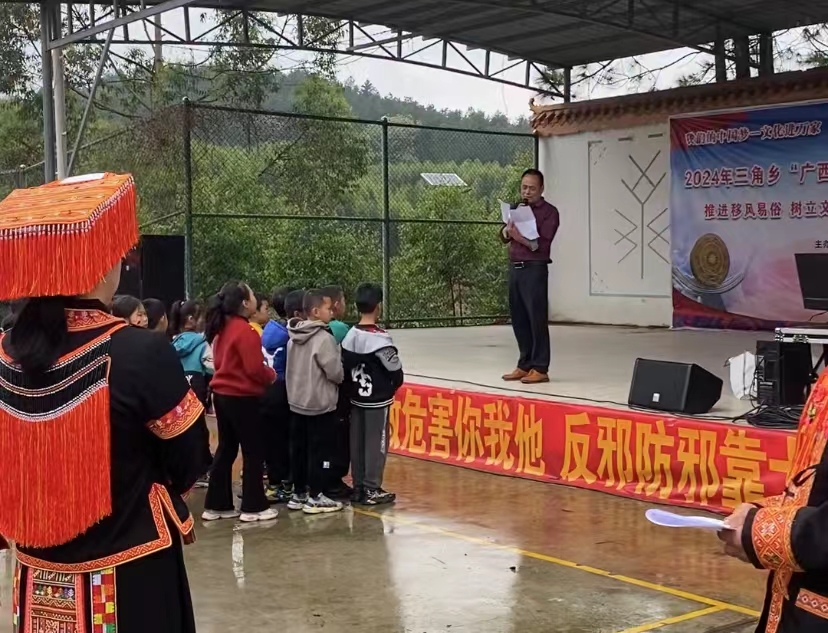 广西反邪教网来宾4月12日讯(通讯员 李腾高)为进一步增强辖区群众反邪意识和法治观念,4月8日,来宾市金秀县三角乡党委政府在龙围村结合“广西三月三 八桂嘉年华”系列活动开展反邪教法治宣传活动。
