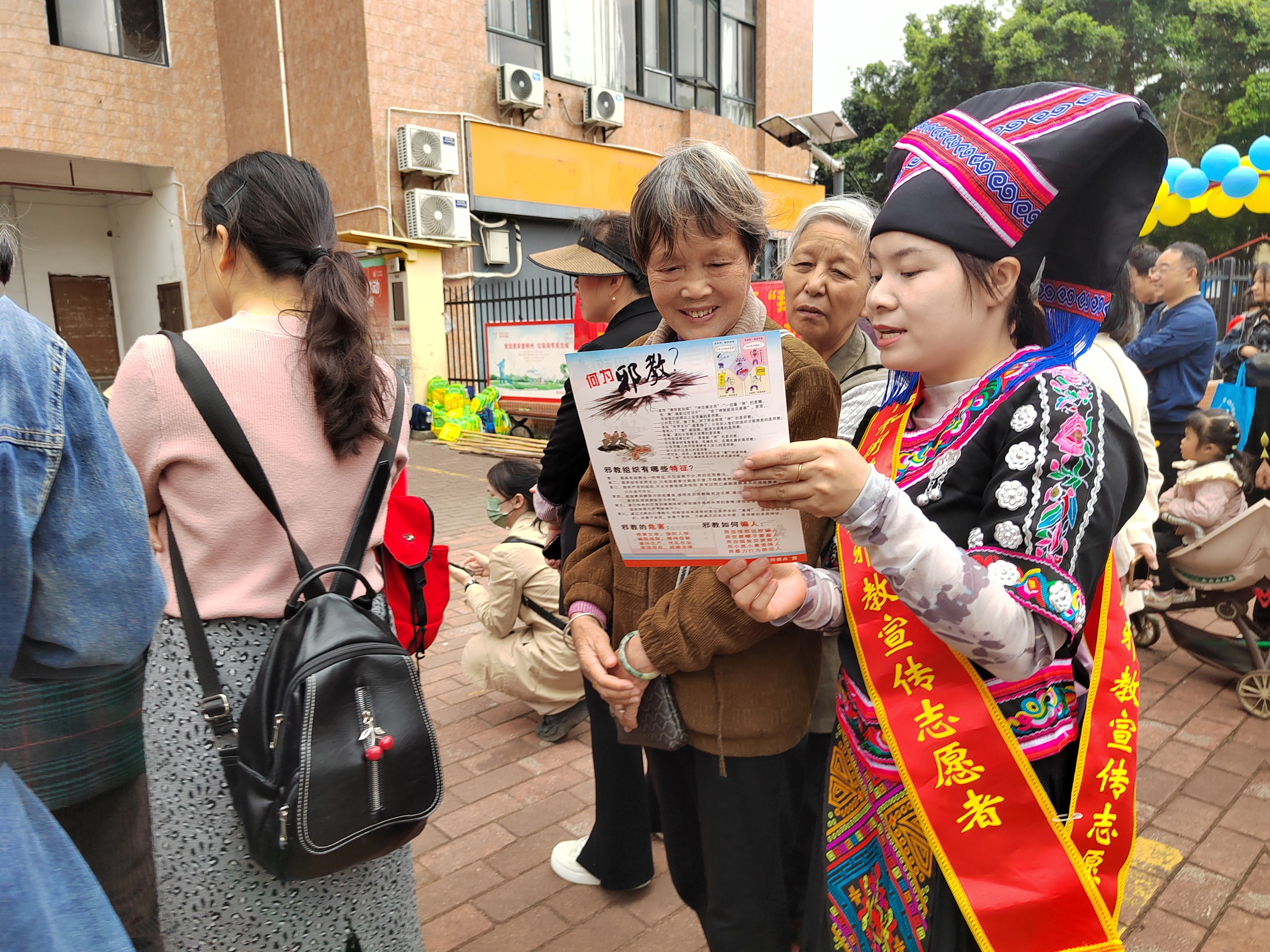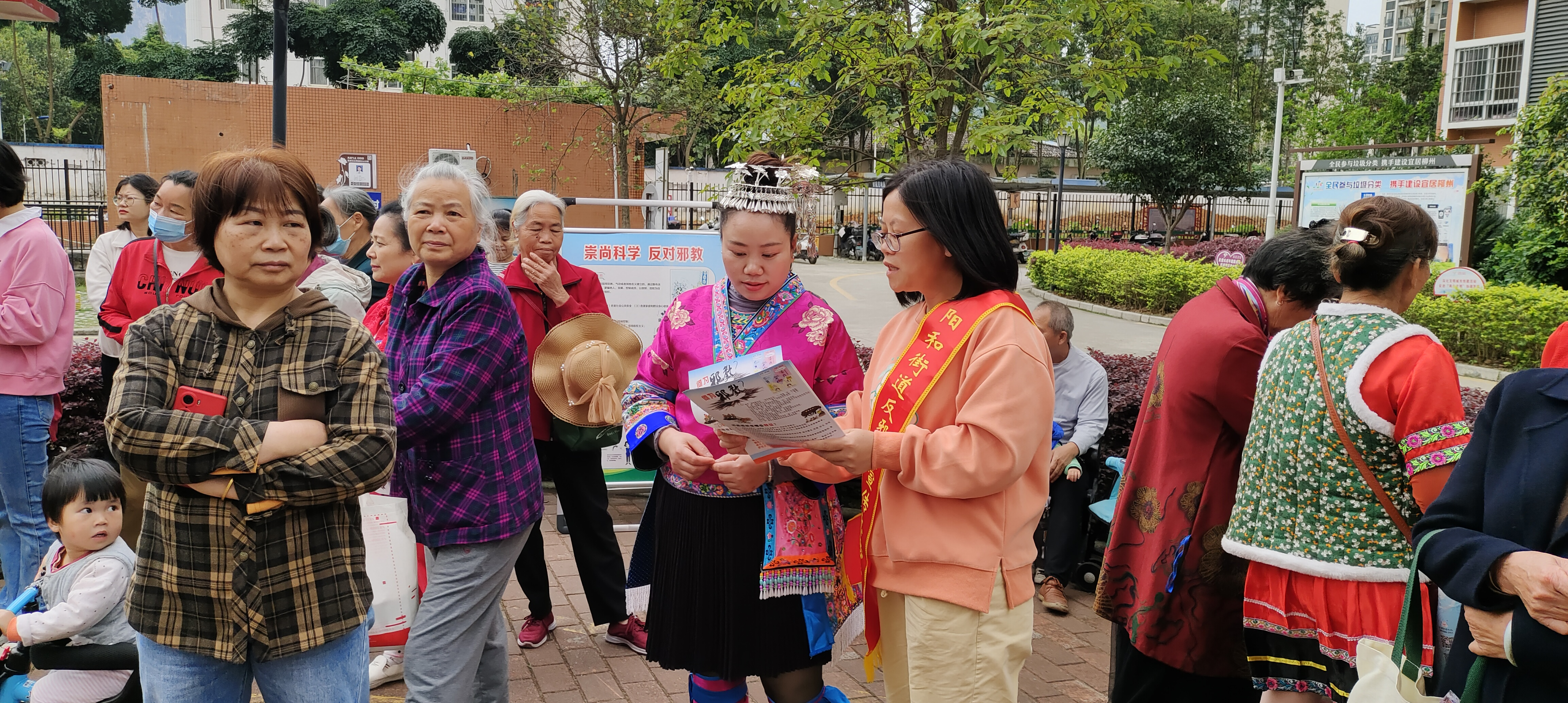 活动现场,入场敬酒、对山歌、跳竹竿舞等文艺表演使居民们沉浸在欢乐的民族传统节日中。社区反邪教志愿者通过悬挂横幅、摆放展板、发放宣传单、与居民面对面交流等形式开展宣传,结合典型案例,围绕什么是邪教、邪教的种类以及特征、邪教的危害等方面进行讲解,深入浅出讲解典型案例,揭露了邪教的真实面目,提醒居民们保持警惕,呼吁居民学会用理性的思维去分辨真假信息,不盲从、不轻信,不被邪教的花言巧语所迷惑。