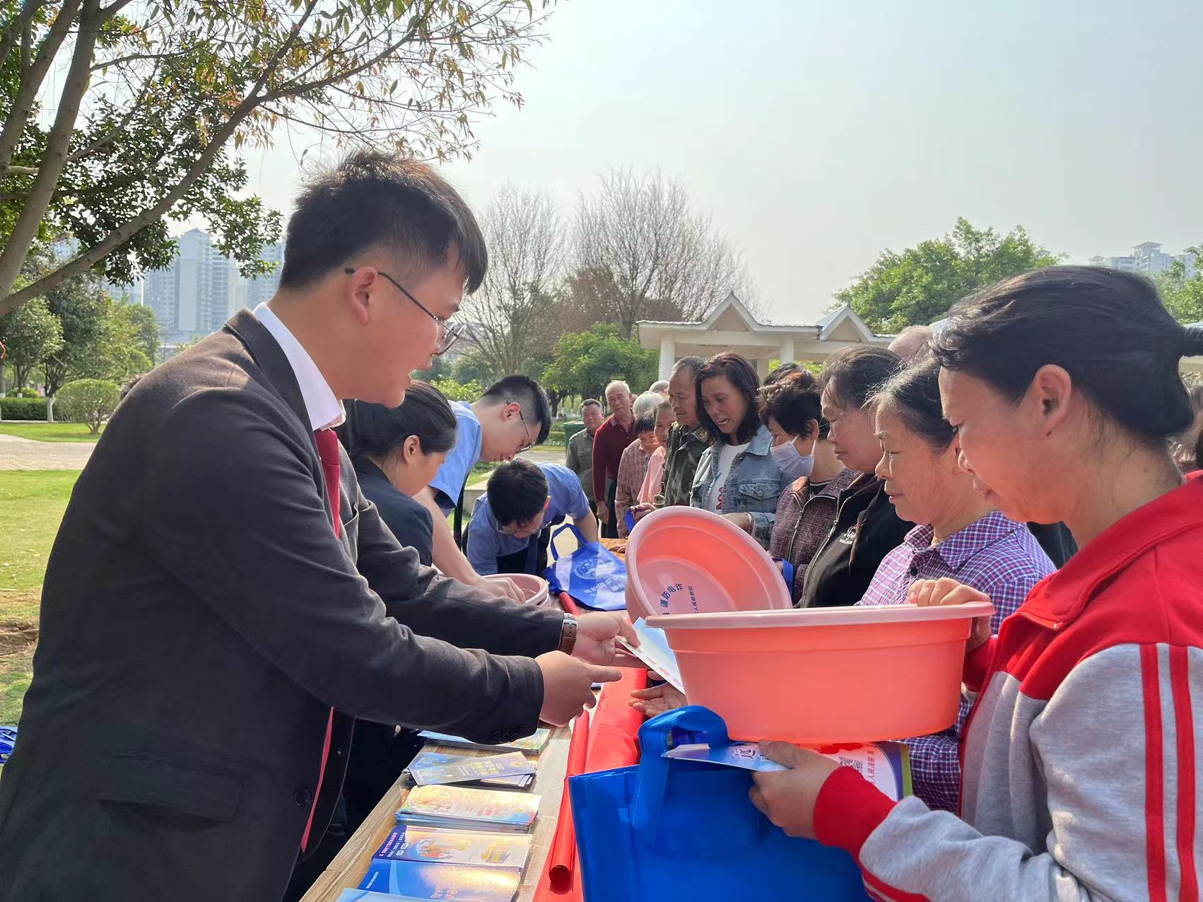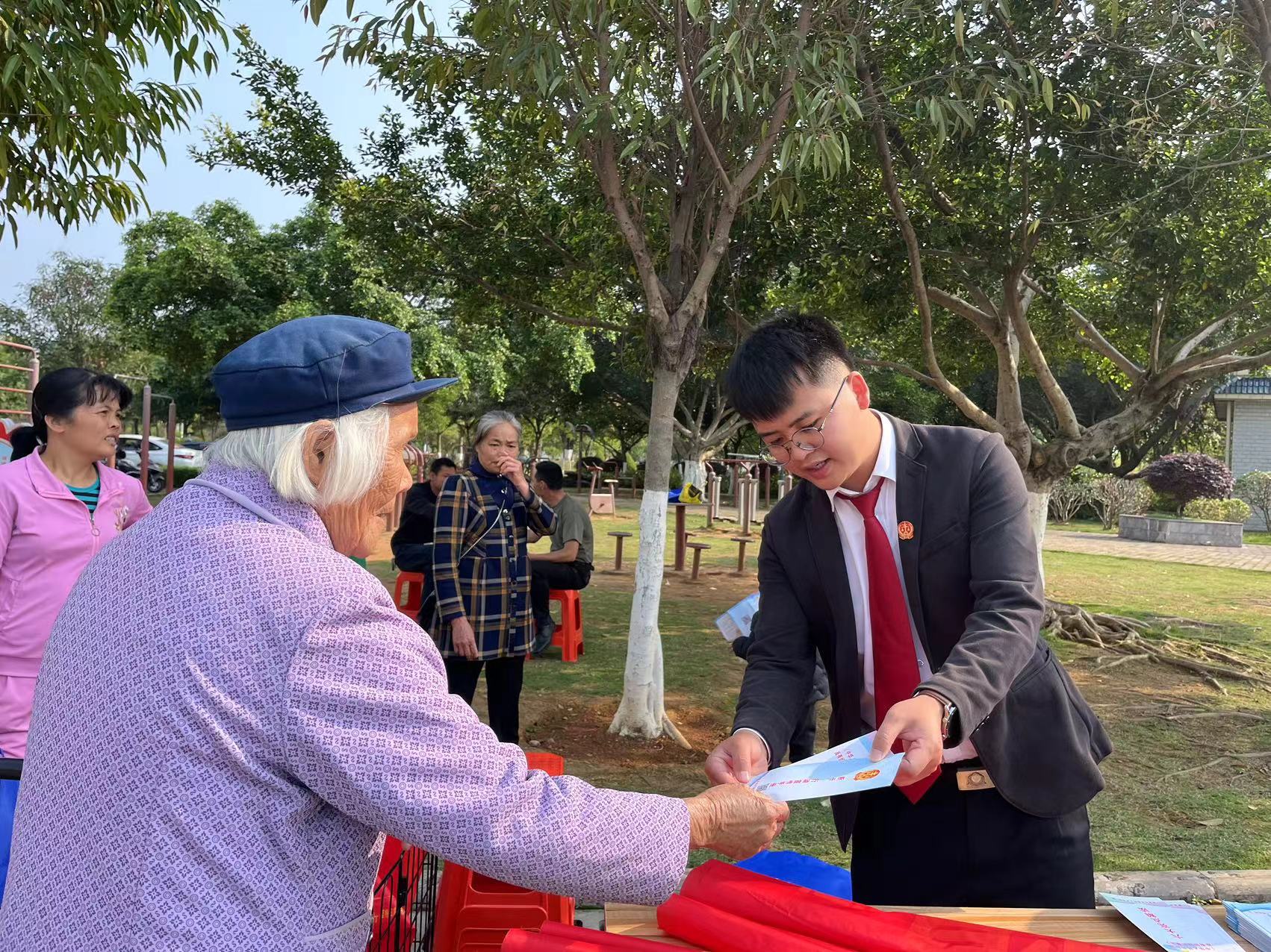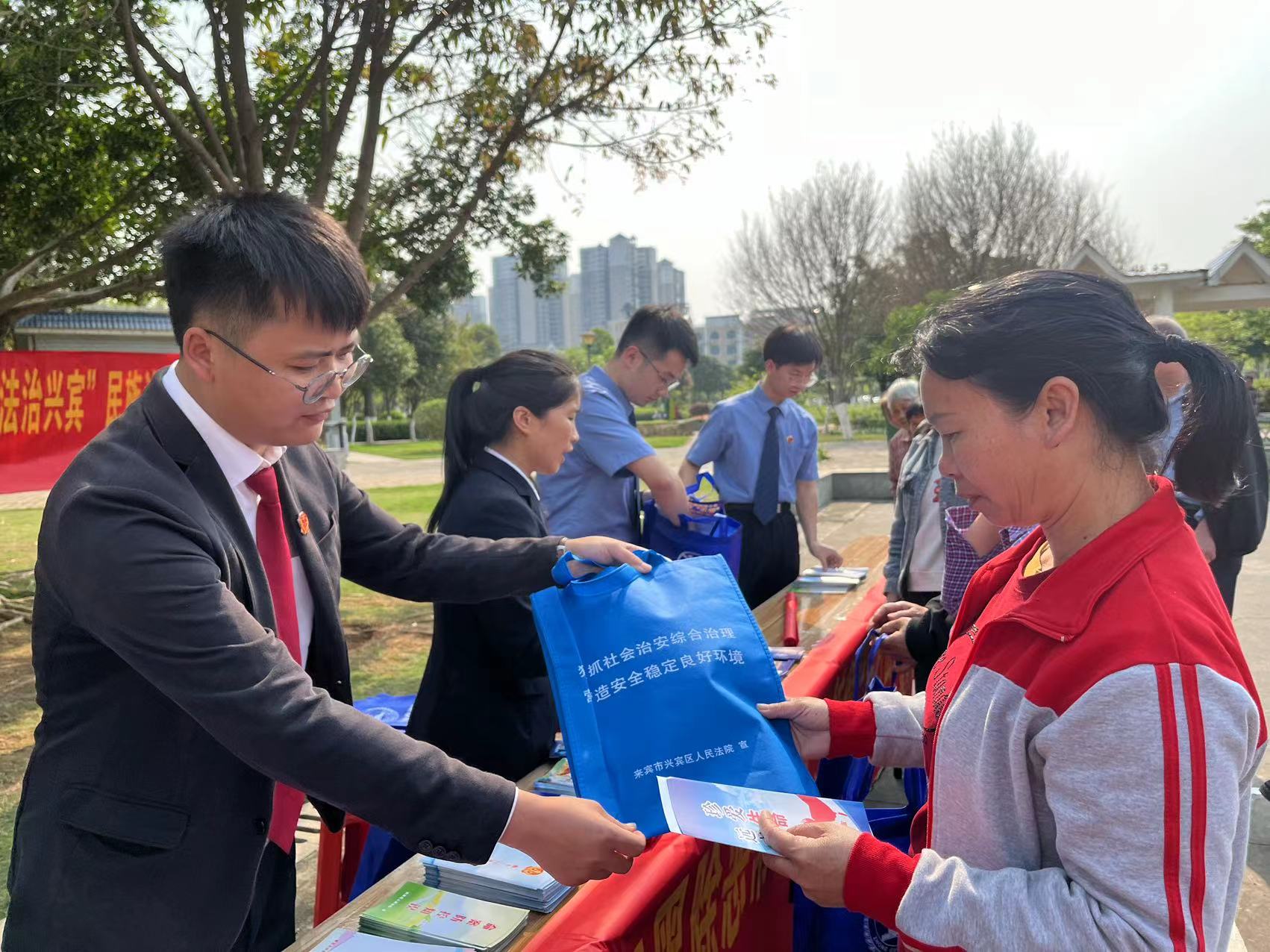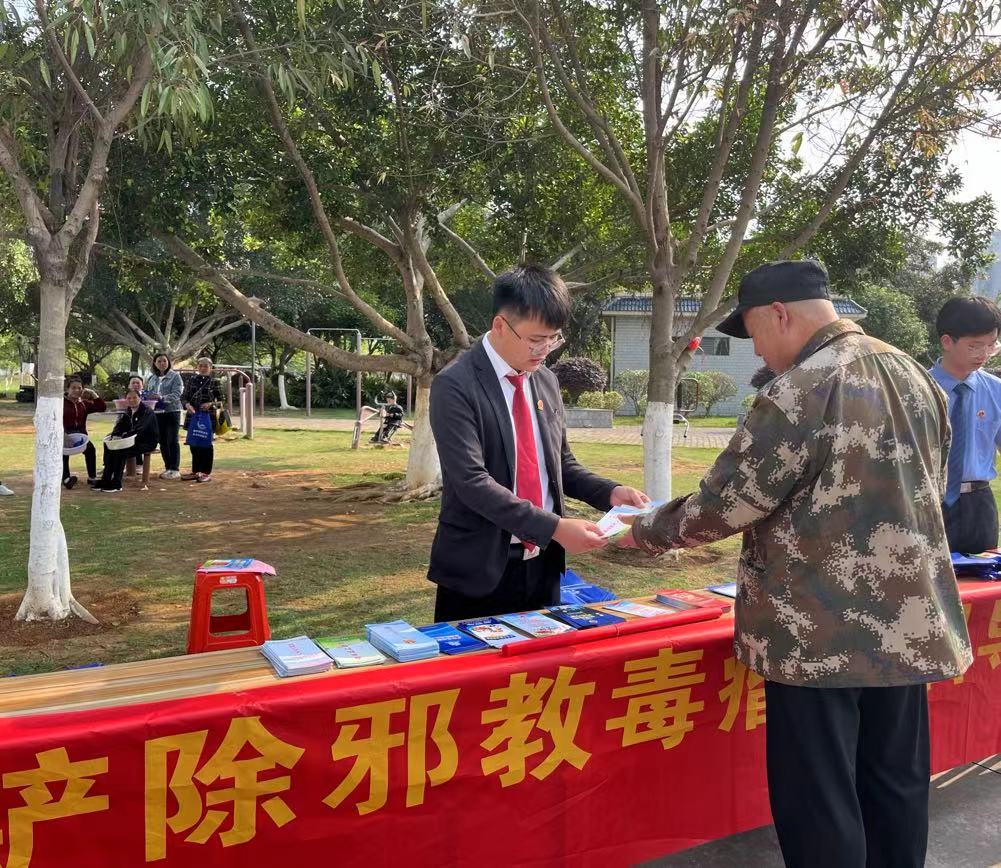广西反邪教网来宾4月15日讯(通讯员 黄融)为全力防范化解邪教侵蚀,增强群众反邪教意识,推动全民自觉抵制邪教,4月8日,来宾市兴宾区人民法院借助壮族“三月三”民俗文化活动契机,联合城南社区在兴宾区城南廉政文化公园开展反邪教普法宣传活动。