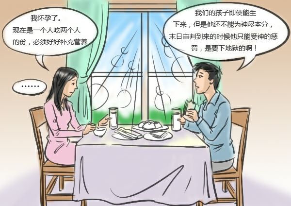 2012年的一个晚上,女朋友告诉我她怀上我的孩子了,我却为此犯大愁。要是有了孩子,我们势必要为了照顾孩子而不能全心全意地顺服神,最后我下定了决心:这个孩子我们不能要啊,我们是侍奉神的人,要牺牲自己的一切来顺服神,孩子只会是累赘。女朋友说什么都不愿意堕胎。最后,我狠心地对她说:“世界马上就要毁灭,末日即将降临,我们的孩子即使能生下来,但是他还不能为神尽本分,末日审判到来的时候他只能受神的惩罚,是要下地狱的啊!”女朋友愣住了,沉默半天,然后开始默默流泪,我知道她被说服了。